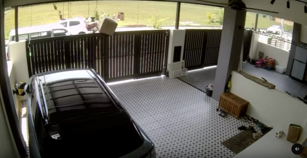 Menerusi video yang dimuat naik oleh seorang pengguna di Threads, video itu dirakam melalui kamera litar tertutup (CCTV) di rumahnya.