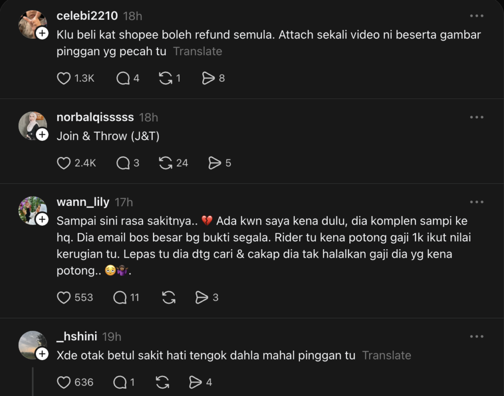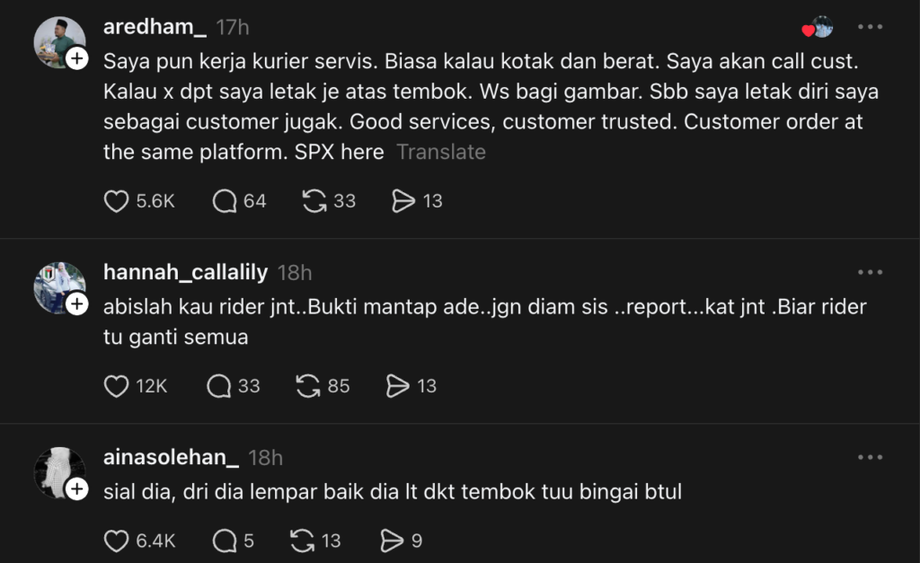 Malah, ada juga yang berkongsi pengalaman sama dengan syarikat penghantar barang terbabit.