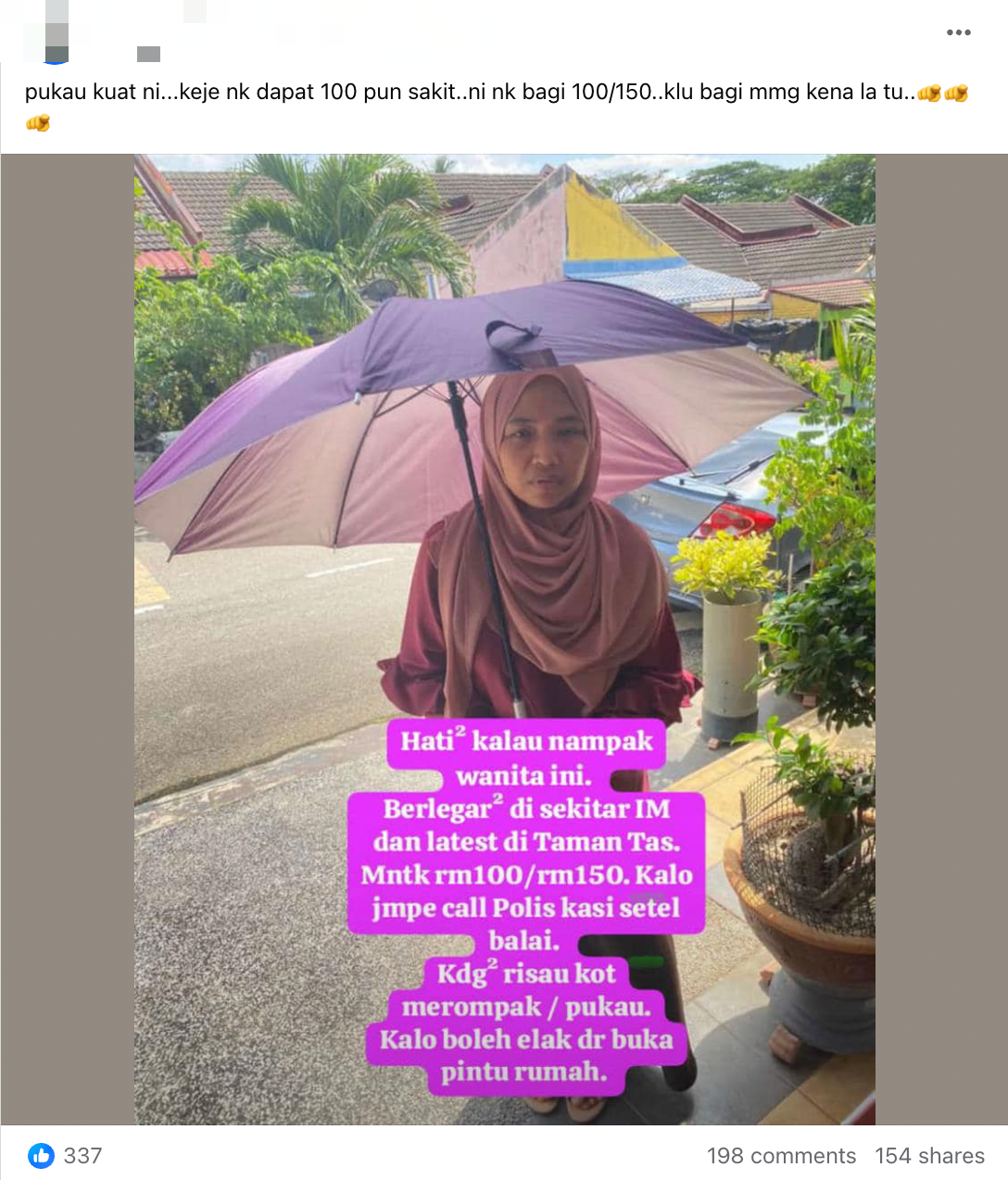 Ketuk pintu rumah ke rumah dan minta RM100 atau RM150