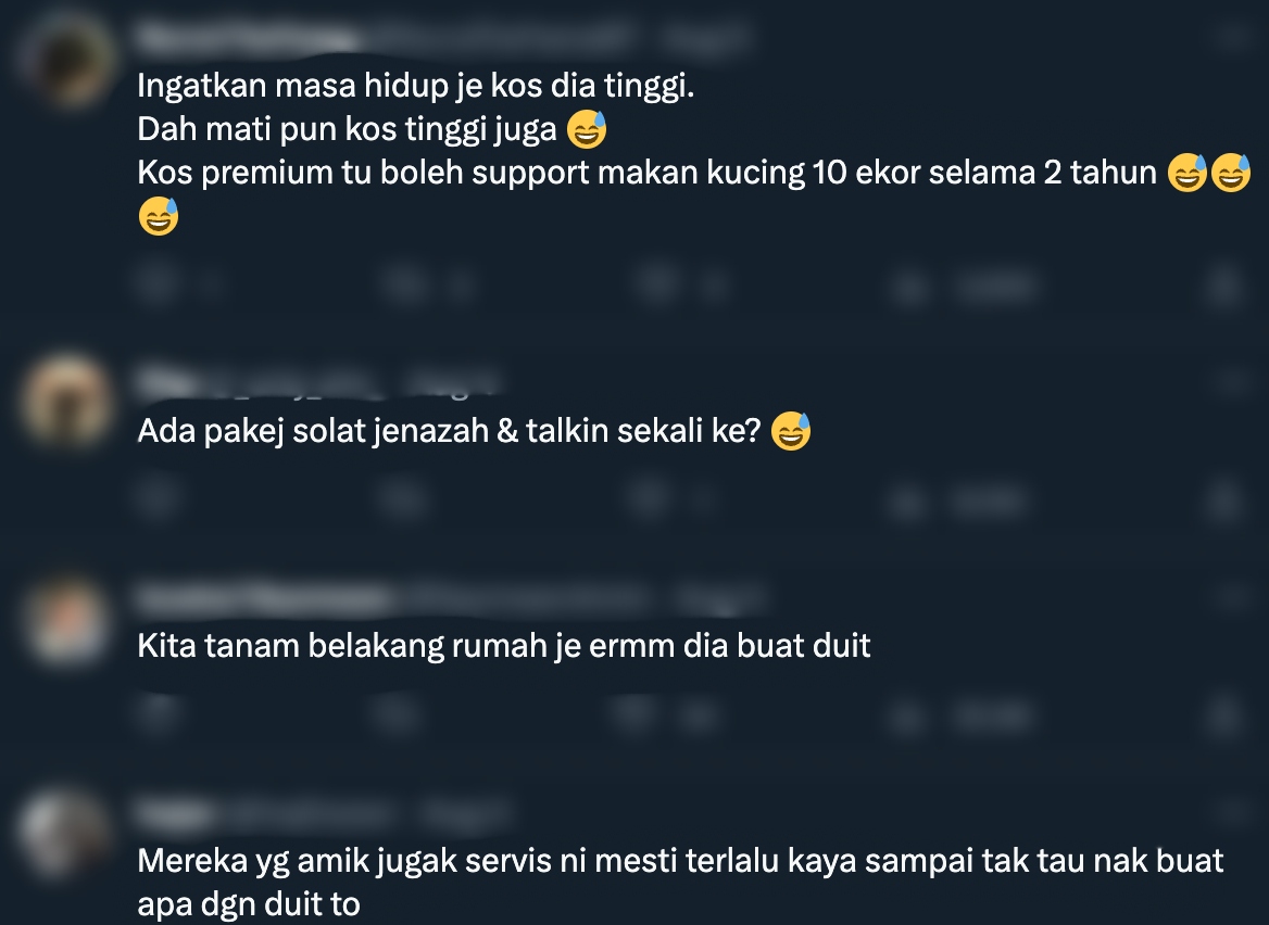 Perkhidmatan menguruskan bangkai haiwan itu bermula daripada RM2,100 hingga RM3,800 untuk pakej premium.