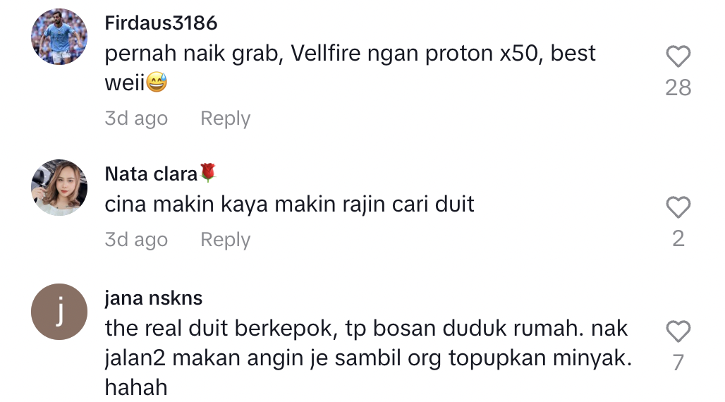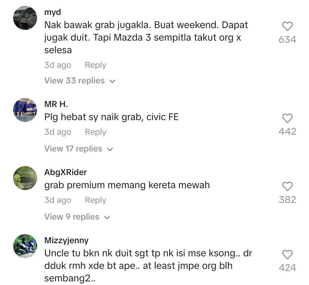 Mereka kemudian berbual semasa dalam perjalanan ke destinasi yang dituju. Difahamkan, uncle berkenaan sudah pun hidup mewah tetapi memilih membuat Grab kerana bosan asyik duduk di rumah.