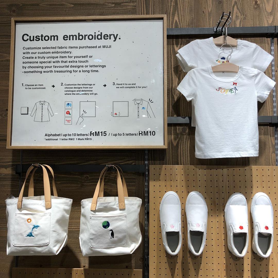 Jika anda berminat, anda boleh kunjungi MUJI Pavilion dan MUJI KLCC untuk nikmati servis sulaman mereka.