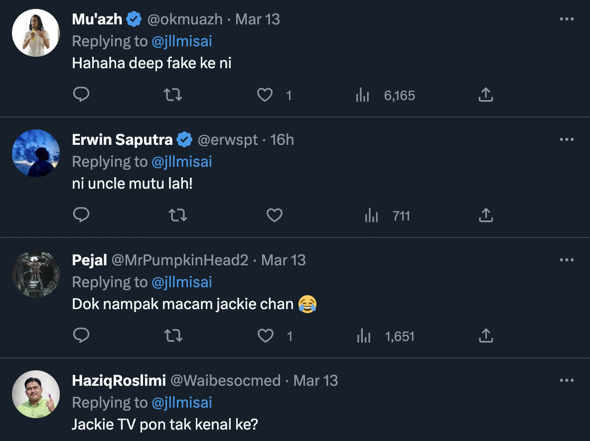 "Tak sangka Jet Li pandai cakap melayu," tulis individu itu di Twitter.