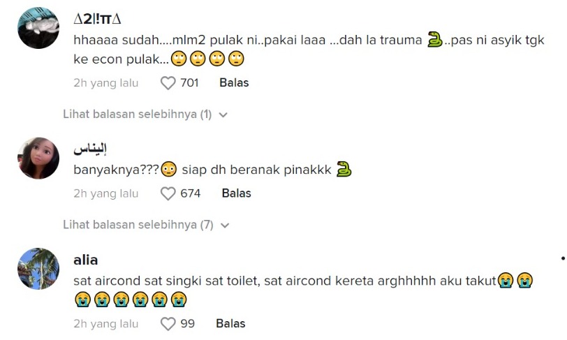 Dalam pada itu, tinjauan di ruangan komen mendapati rata-rata netizen turut terkejut dengan penemuan tersebut dan menimbulkan banyak persoalan bagaimana ular tersebut berjaya masuk.