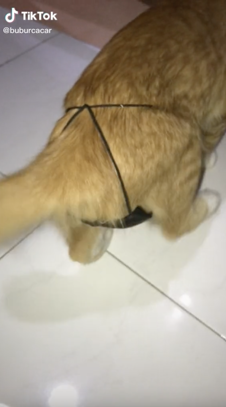 Apa yang menarik perhatian warganet adalah thong yang dipakai oleh kucing tersebut. Difahamkan, tuannya memakaikan thong itu bagi mengelakkan kucingnya kencing di merata tempat.