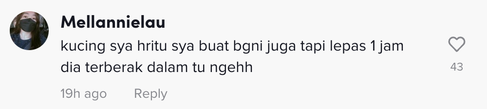 "Sama lah Oyen saya pun suka pancut merata. Dah try nak pakai pampers tapi menggelupur lari litang pukang" – Warganet