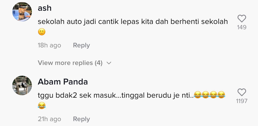 Berikut di bawah adalah antara komen daripada netizen di TikTok: