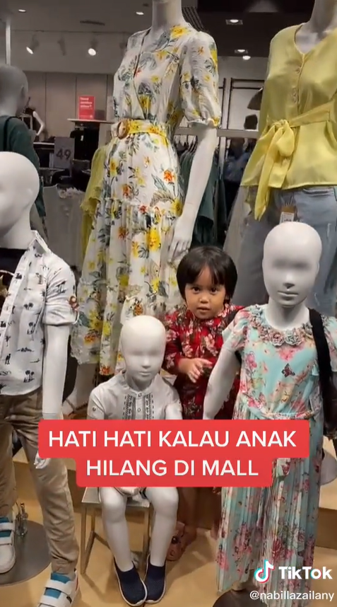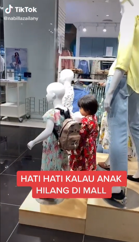 Menerusi video tersebut, kelihatan si ibu sedang mencari anaknya di dalam sebuah butik pakaian.