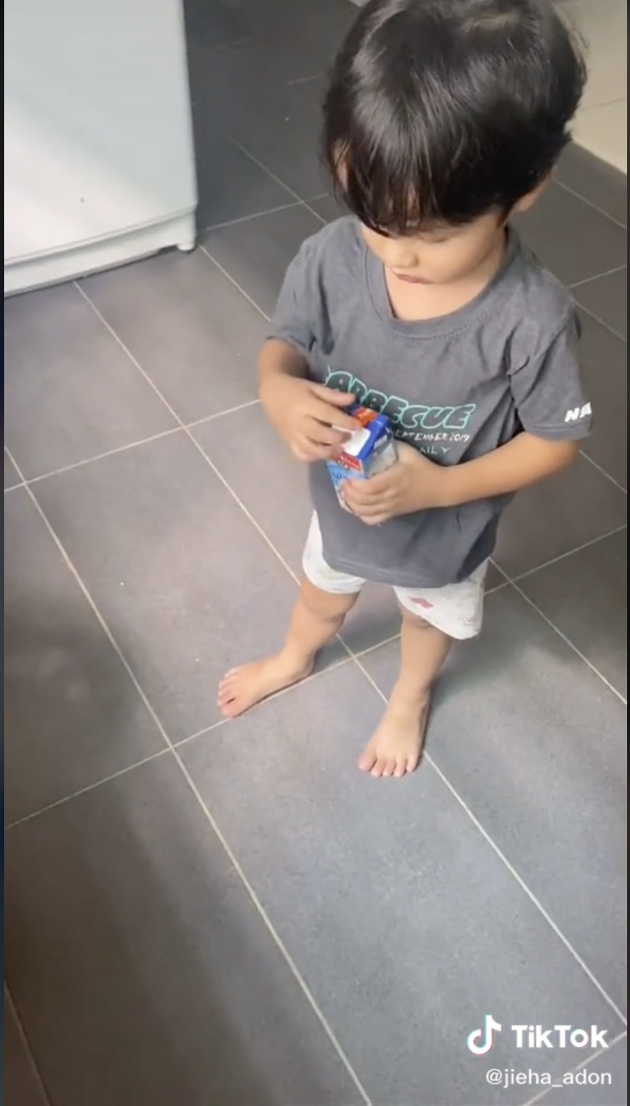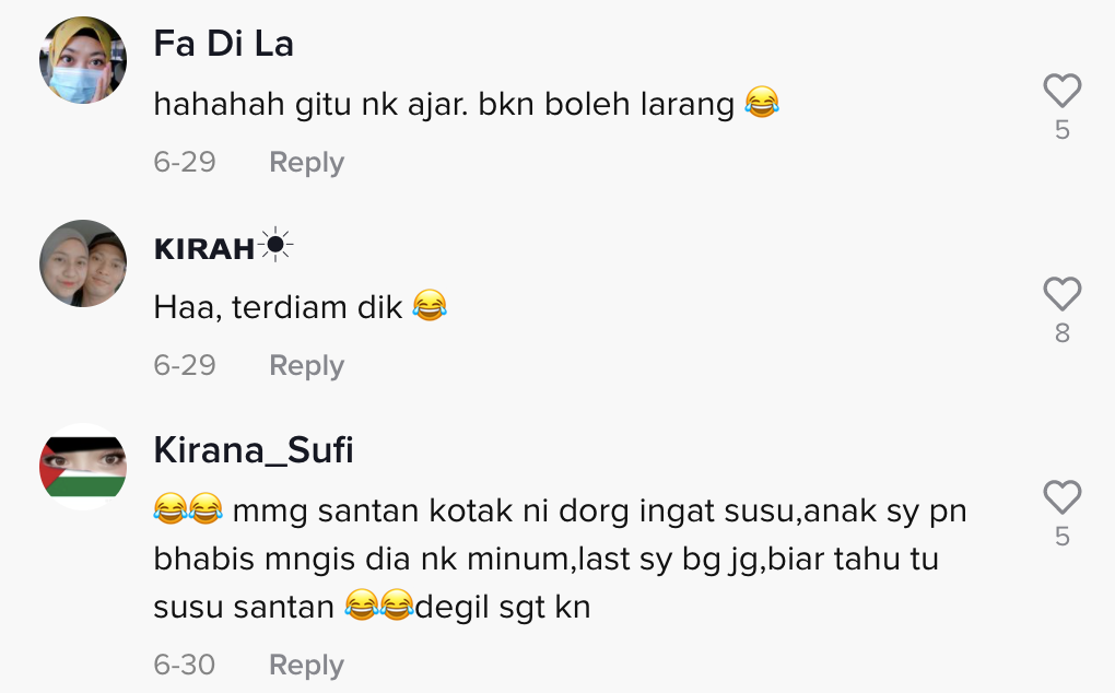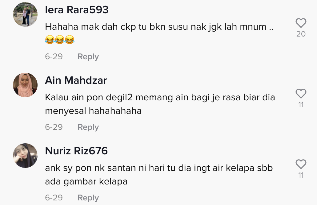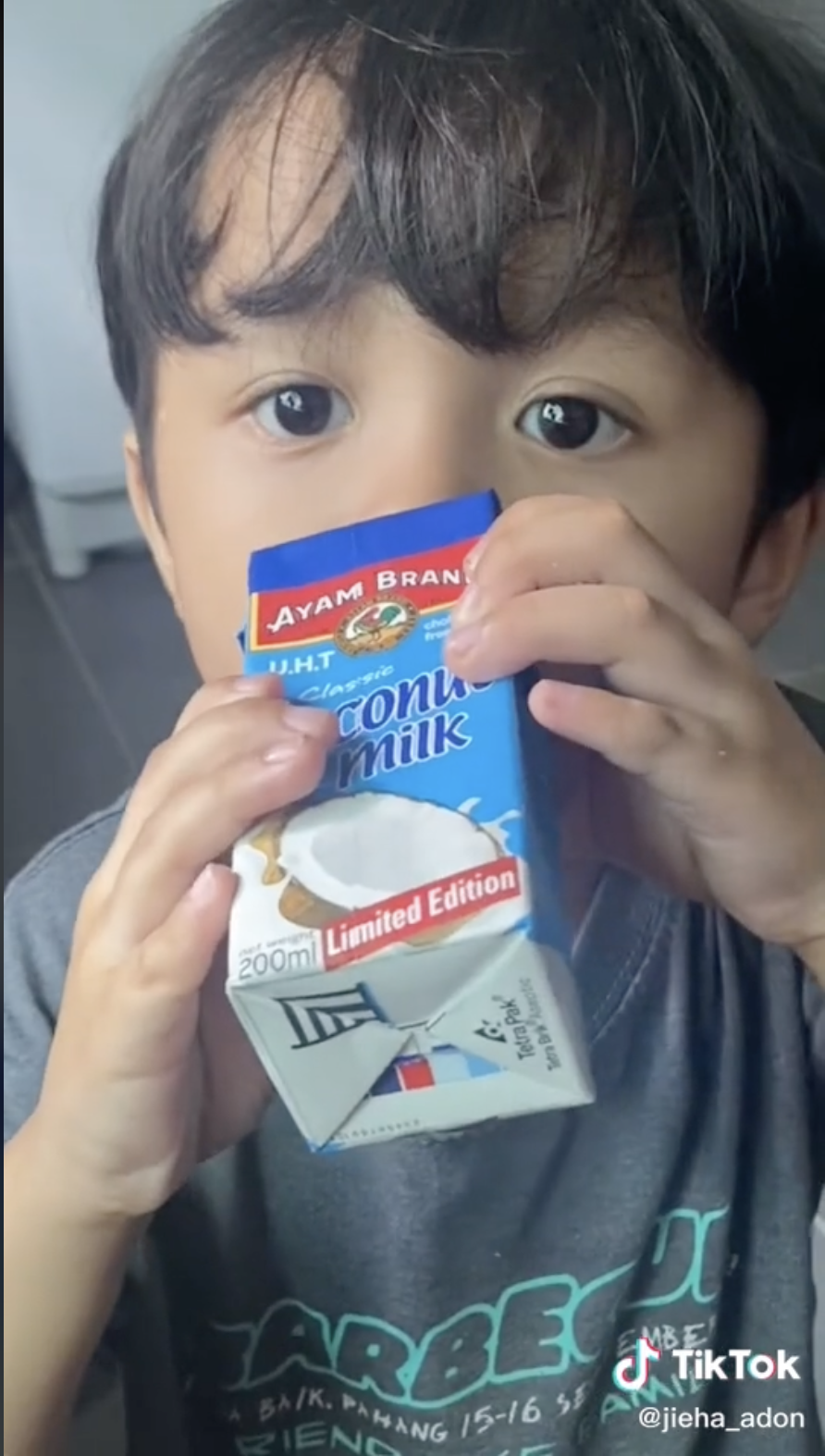 Sama seperti video yang tular di TikTok ini apabila seorang ibu berkongsi reaksi anaknya yang mahu minum kotak santan menarik perhatian ramai.