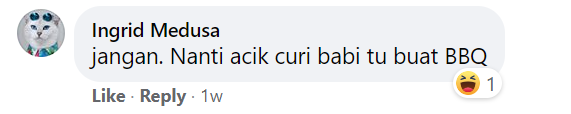"Babi tak boleh bela, nanti dia gigit," katanya.