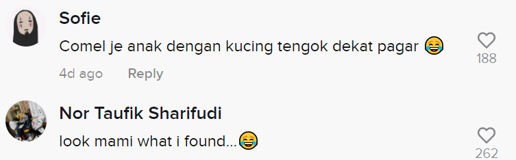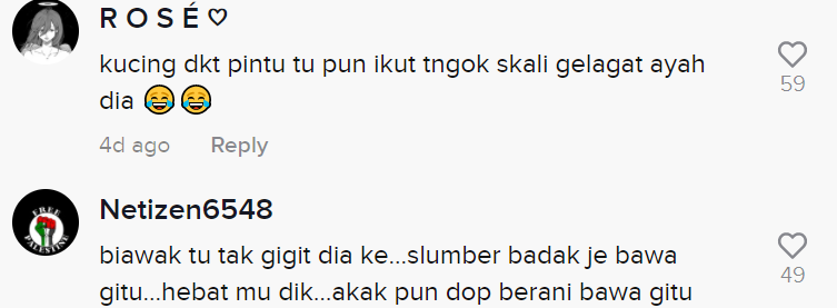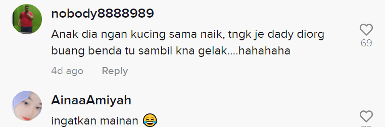 Sementara itu, tinjauan di ruangan komen mendapati rata-rata netizen turut terhibur melihat gelagat kanak-kanak itu. Malah, ada juga yang tidak tahan ketawa melihat aksi si bapa membuang haiwan tersebut.