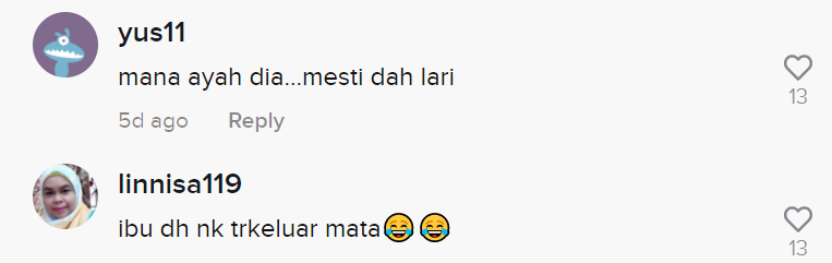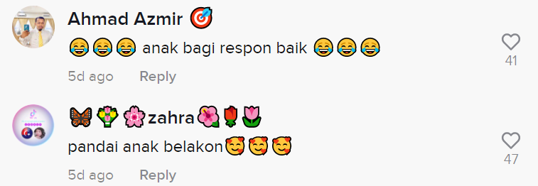 Dalam pada itu, tinjauan di ruangan komen mendapati rata-rata netizen turut terhibur melihat gelagat kanak-kanak dan si ibu tersebut.