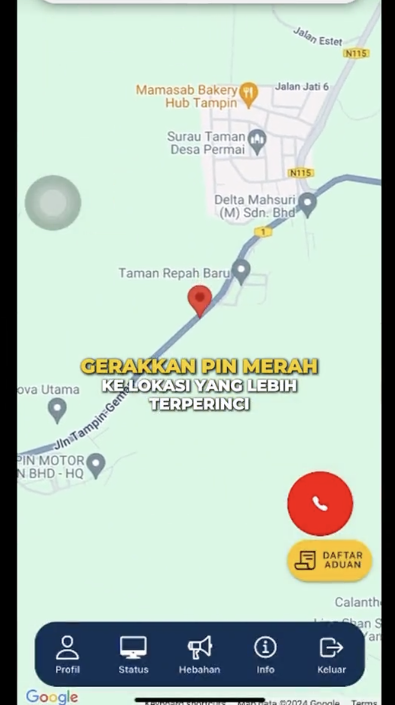 Kemudian daftar akaun dan pilih lokasi jalan tersebut untuk membuat aduan mengenainya. Selepas itu muat naik gambar berlubang seperti yang diminta dan selesai.