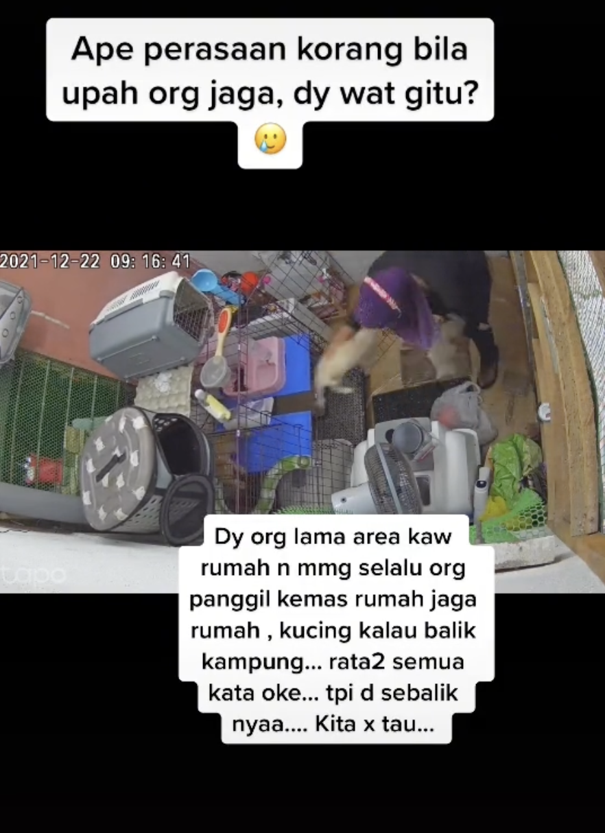 Difahamkan, dia mengupah seorang individu untuk menjaga kucing-kucingnya ketika dia tiada. Namun, dia terkejut selepas melihat rakaman CCTV yang menunjukkan perbuatan sebenar penjaga itu.
