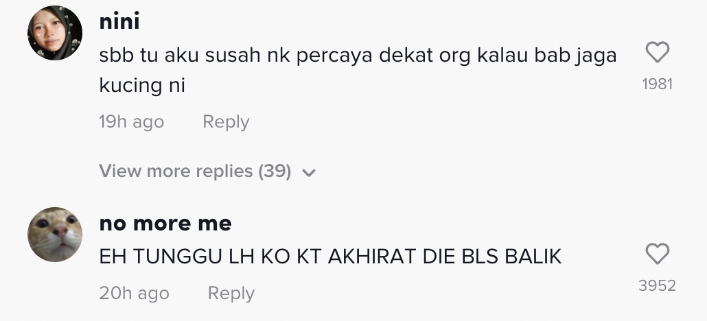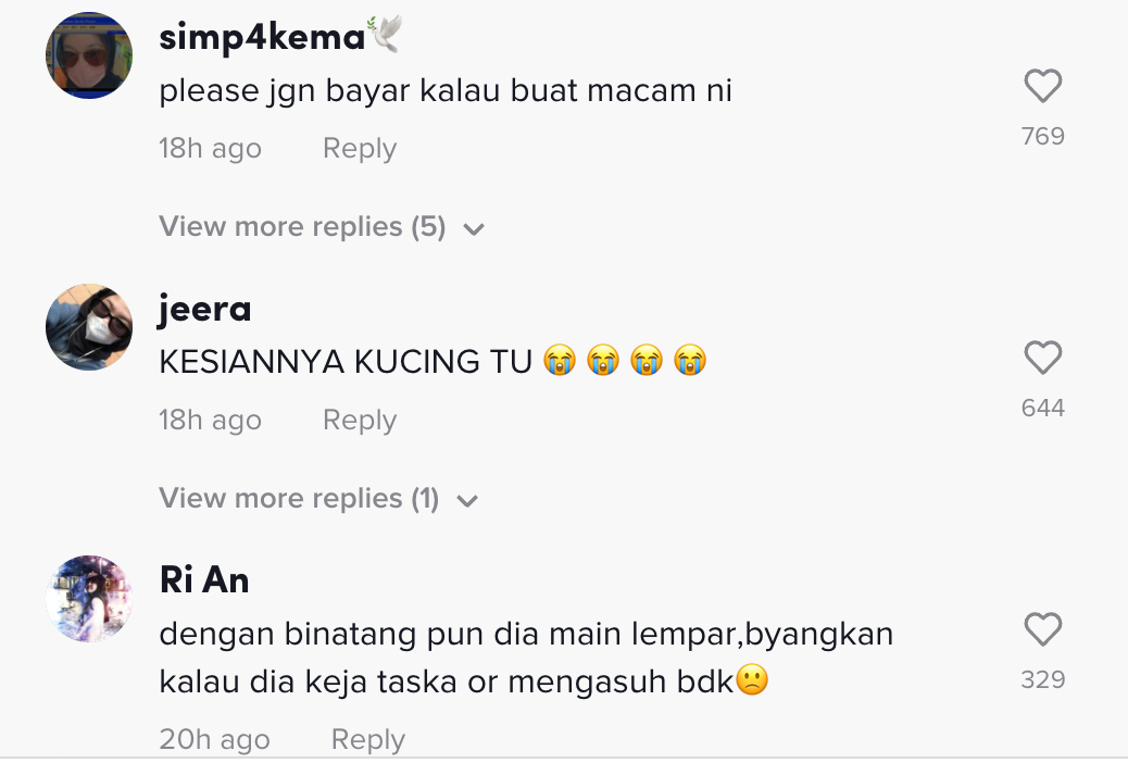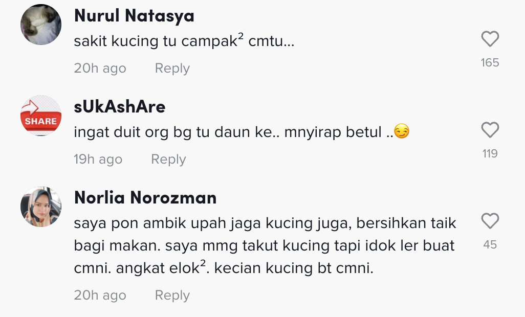 "Alamak, ni baru kucing. Kalau upah jaga budak macam mana agaknya" – Netizen