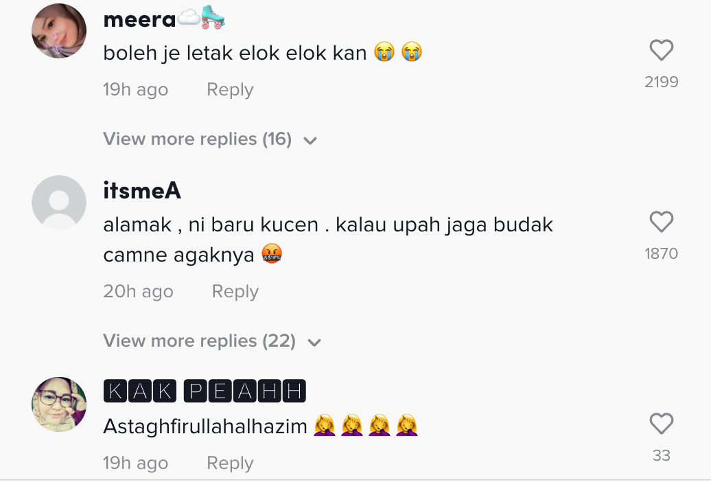 Berikut di bawah adalah antara komen daripada netizen di TikTok: