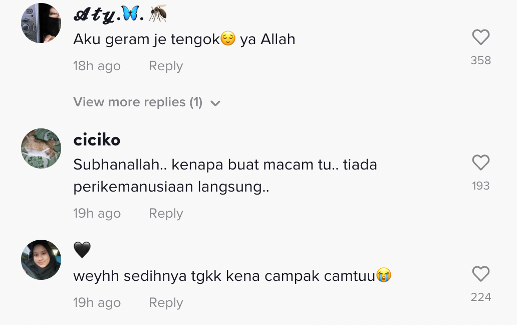 Dalam pada itu, tinjauan di ruangan komen mendapati rata-rata netizen turut meluahkan rasa marah mereka selepas melihat video tersebut.