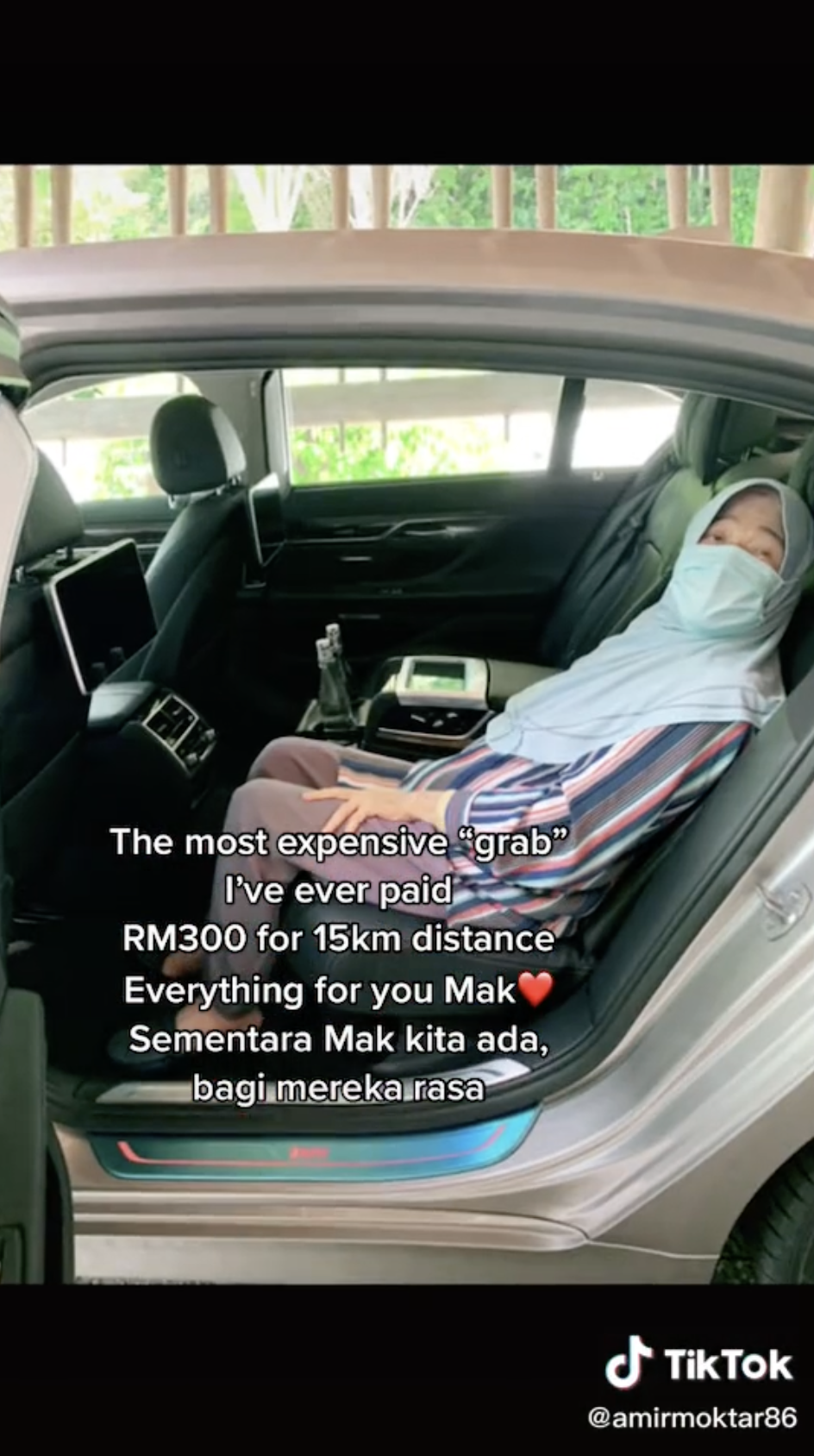 Menerusi video dari @amirmoktar86, kelihatan dia berkongsi pengalaman semasa dia dan ibunya menaiki sebuah kenderaan mewah.