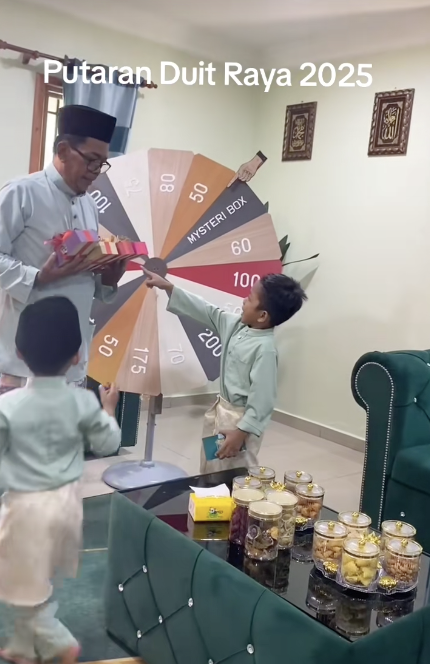 [VIDEO] Atuk Main ‘Roda Impian’, Cara Kreatif Bagi Duit Raya Kepada Cucu-Cucu