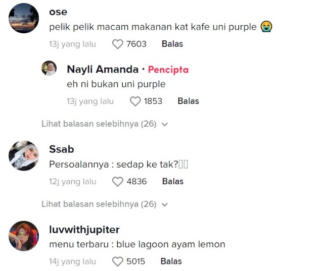 Berikut di bawah merupakan antara komen menarik daripada netizen di TikTok: