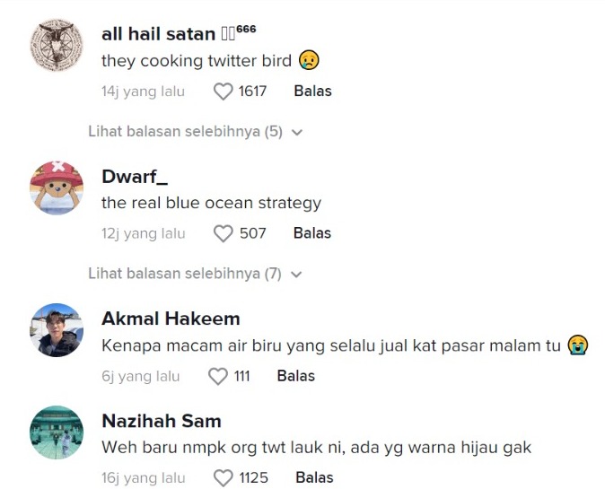 "Kenapa macam air biru yang selalu jual kat pasar malam tu haha" – Netizen