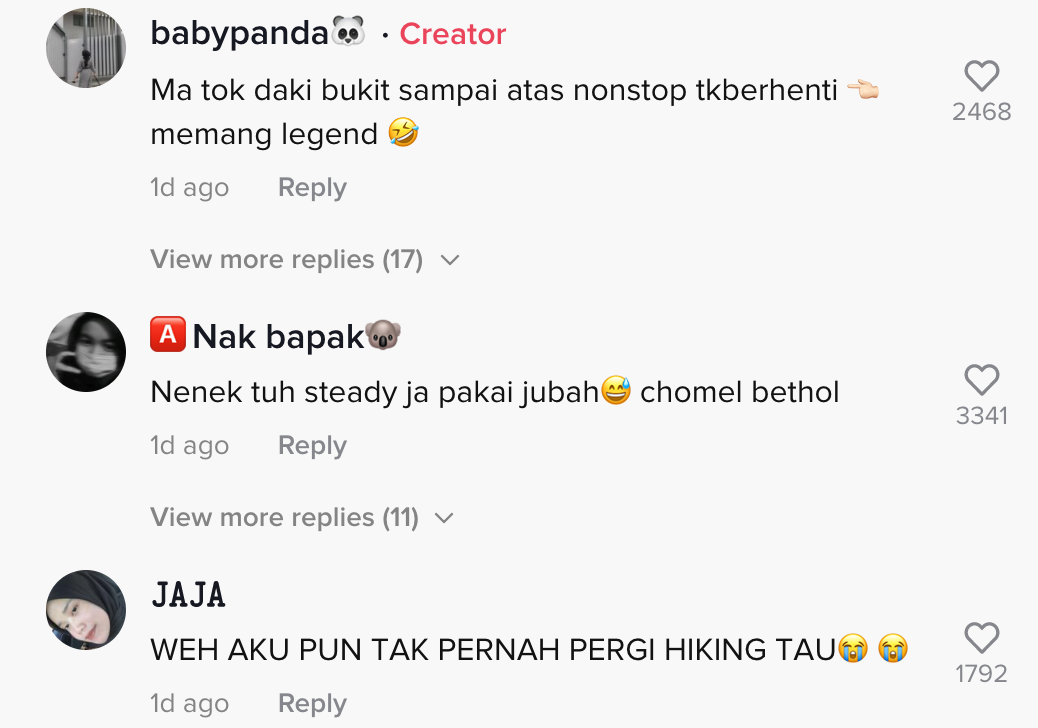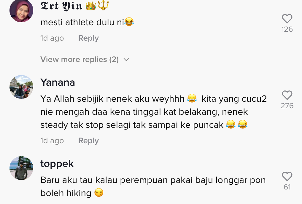 Namun, tular baru-baru ini video di TikTok menunjukkan seorang wanita warga emas menaiki bukit dengan menggenakan jubah dan selipar telah mencuri tumpuan ramai.