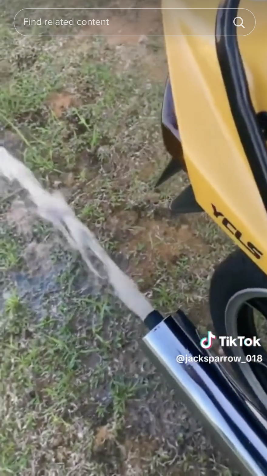 Dapat dilihat si bapa sedang bersama motornya. Namun, apa yang lebih menarik perhatian adalah apabila sebaik saja lelaki berkenaan menghidupkan enjin motor itu, air mula keluar dari ekzos motor tersebut.