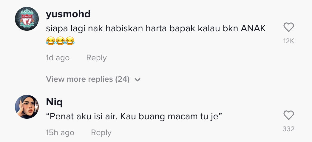 Berikut di bawah adalah antara komen daripada netizen di TikTok: