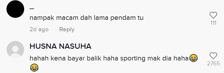 "Hahaha kena bayar balik, sporting mak dia" – Netizen