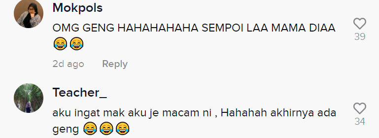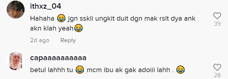 Dalam pada itu, tinjauan di ruangan komen mendapati rata-rata netizen turut terhibur melihat gelagat anak beranak itu. Malah, ramai yang boleh relate situasi meminta hutang itu daripada ibu bapa mereka.