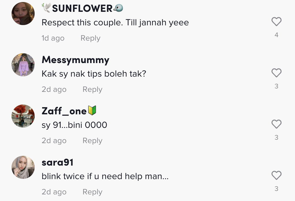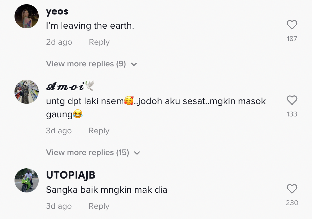 Berikut di bawah adalah antara komen daripada netizen di TikTok: