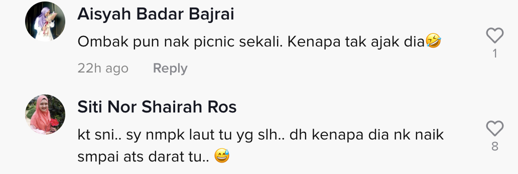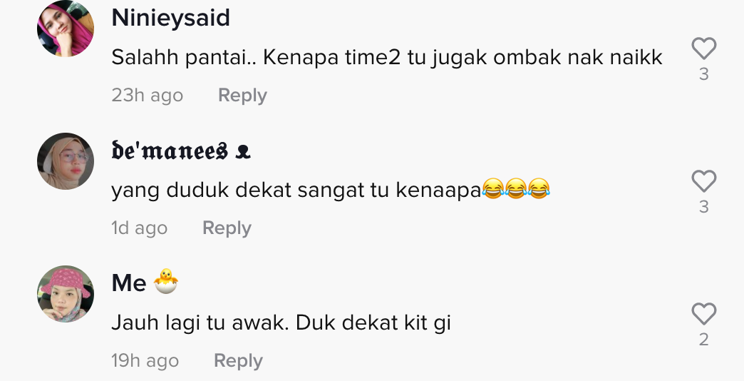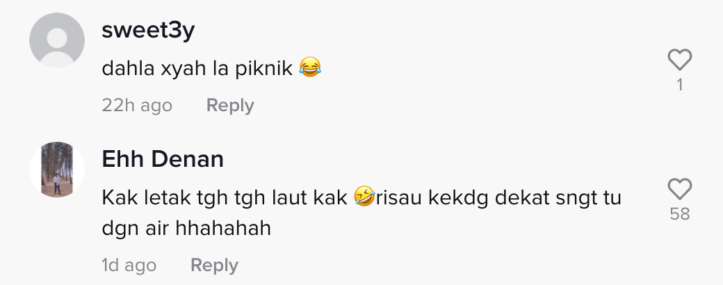 "Kak letak tengah laut kak, risau kadang-kadang dengan sangat dengan air tu" – Netizen