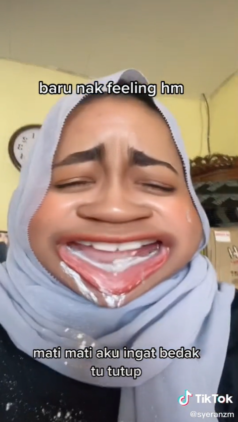 Sementara itu, tinjauan di ruangan komen mendapati rata-rata netizen turut terhibur melihat gelagat gadis tersebut. Malah, ada yang menanyakan bagaimana rasa bedak itu.