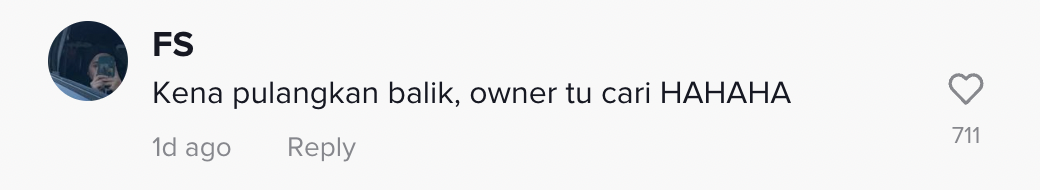 "Kena pulangkan balik, owner tu cari hahaha" – Netizen
