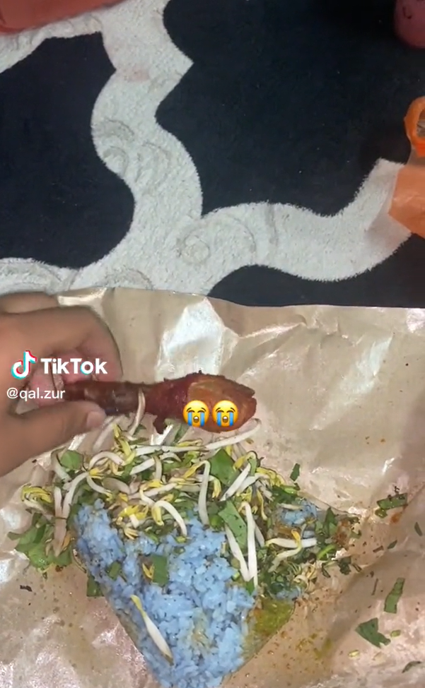 Dalam video berkenaan, dia telah merakam nasi kerabu yang dibelinya di bazar Ramadan Taman Cempaka, Melaka. Dapat dilihat ayam paha bakar nasi berkenaan adalah sangat kecil berbanding saiz biasa.
