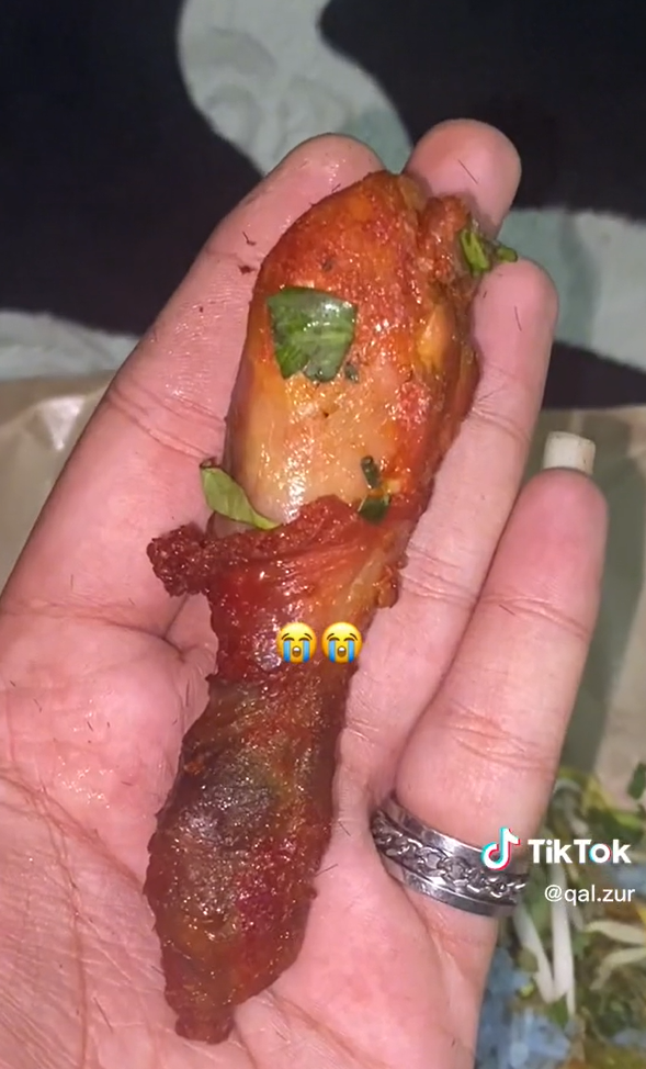 Menerusi video yang dimuat naik oleh @qal.zur di TikTok, kelihatan individu ini amat terkejut dengan ayam bakar dibelinya yang mempunyai saiz lebih kecil daripada tapak tangannya.
