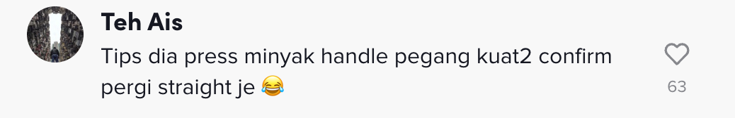 "Tips dia press minyak handle pegang kuat-kuat confirm pergi straight je" – Netizen