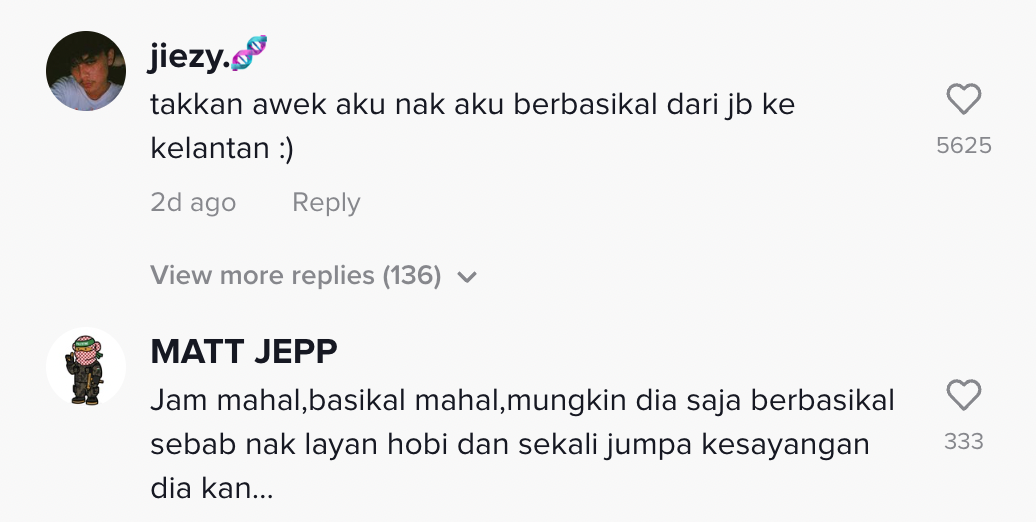 Seperti video yang tular di TikTok ini apabila seorang wanita berkongsi kesungguhan teman lelakinya yang sanggup berbasikal jauh untuk berjumpa telah mencuri perhatian ramai.