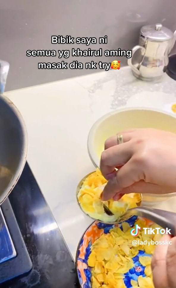 Menerusi video yang dimuat naik oleh @ladybosskc di TikTok, kelihatan seorang individu sedang menunjukkan bibiknya yang sedang memasak cucur udang di dapur rumahnya.