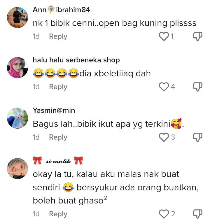 Dalam pada itu, tinjauan di ruangan komen mendapati rata-rata netizen turut cemburu dengan bibik individu berkenaan dan ada juga yang meminta beg kuning untuk menyewa bibik seperti ini.