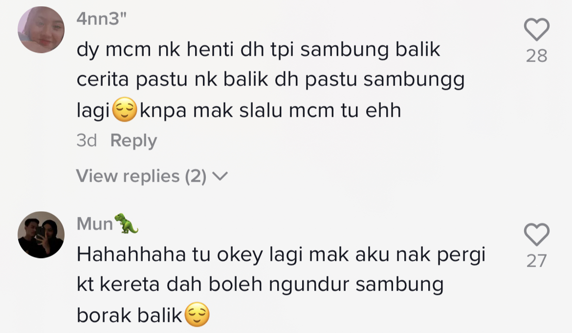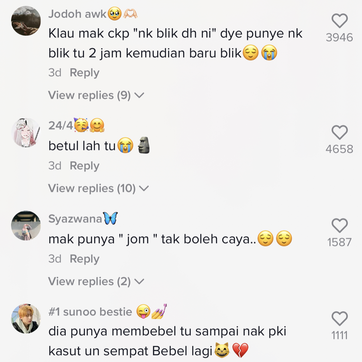 "Kalau mak cakap dah nak balik, dia punya nak balik tu, dua jam kemudian baru balik" – Netizen