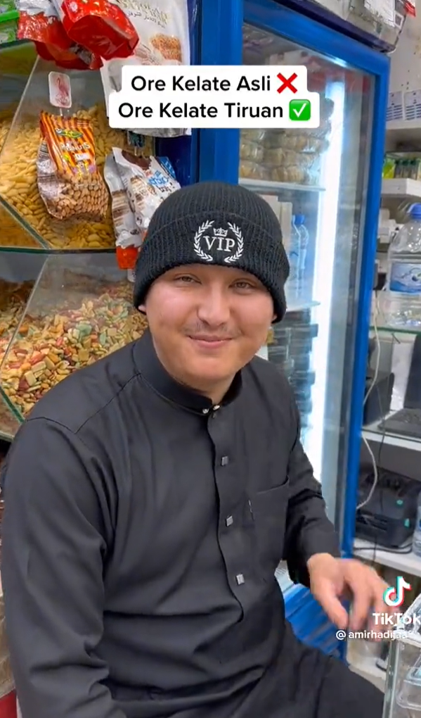 Menerusi video yang dimuat naik oleh @amirhadijaaffar, kelihatan seorang individu telah merakam peniaga kedai kurma dan coklat di Madinah sedang fasih bercakap dalam loghat Kelantan.