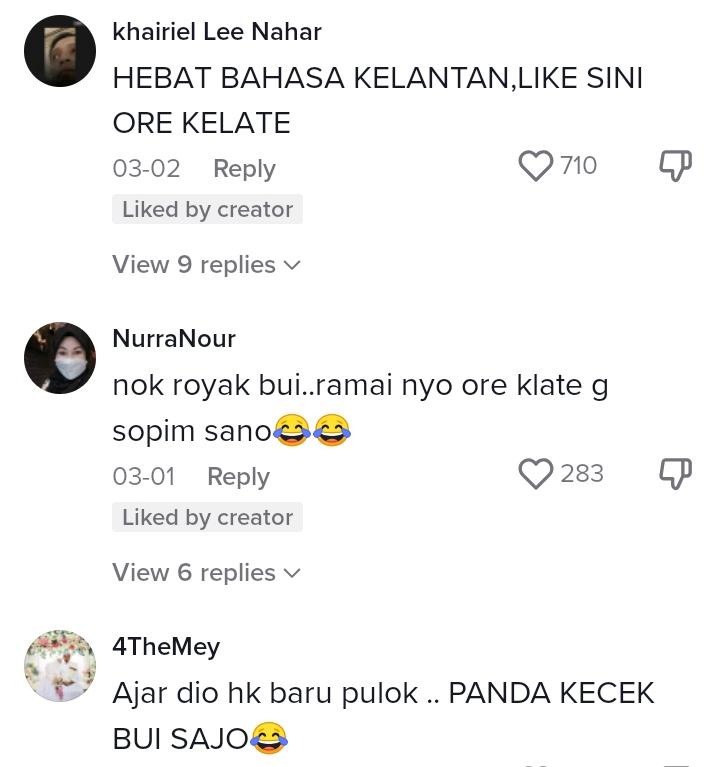 Susulan tularnya video itu yang kini mencecah sehingga 238.1K views, 13.9K likes dan 440 comments di TikTok, rata-rata netizen turut terkejut dan kagum dengan kebolehannya bercakap Kelantan.