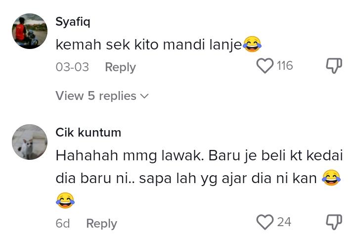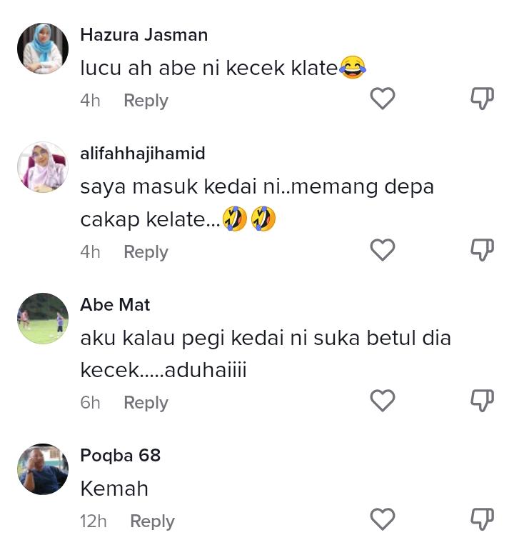 "Hahahaha memang lawak. Baru je balik dekat kedai dia ni, siapa lah yang ajar dia ni kan" – Netizen