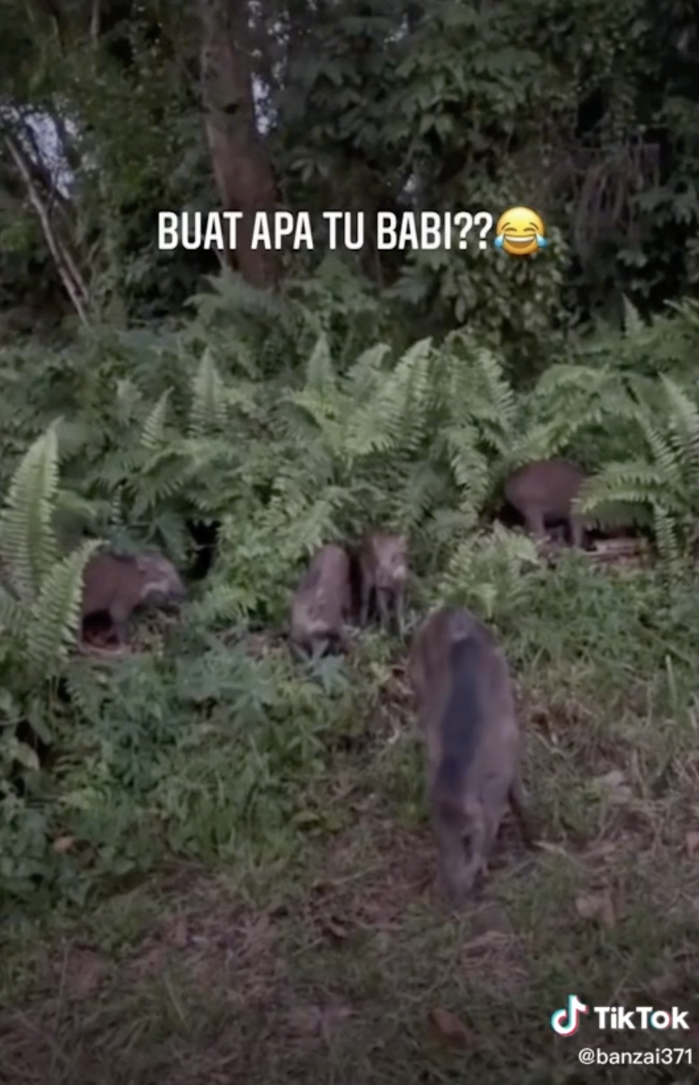 Namun, selepas itu kedengaran suara seorang budak perempuan bertanyakan apakah yang sedang dilakukan oleh sekumpulan khinzir di tepi jalan. Situasi spontan itu sempat dirakam oleh bapanya.