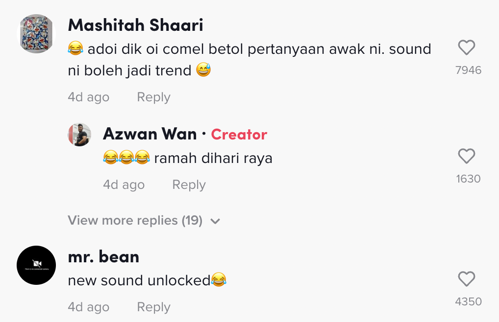 "Adoi dik oi comel betol pertanyaan awak ni. Sound ni boleh jadi trend" – Netizen