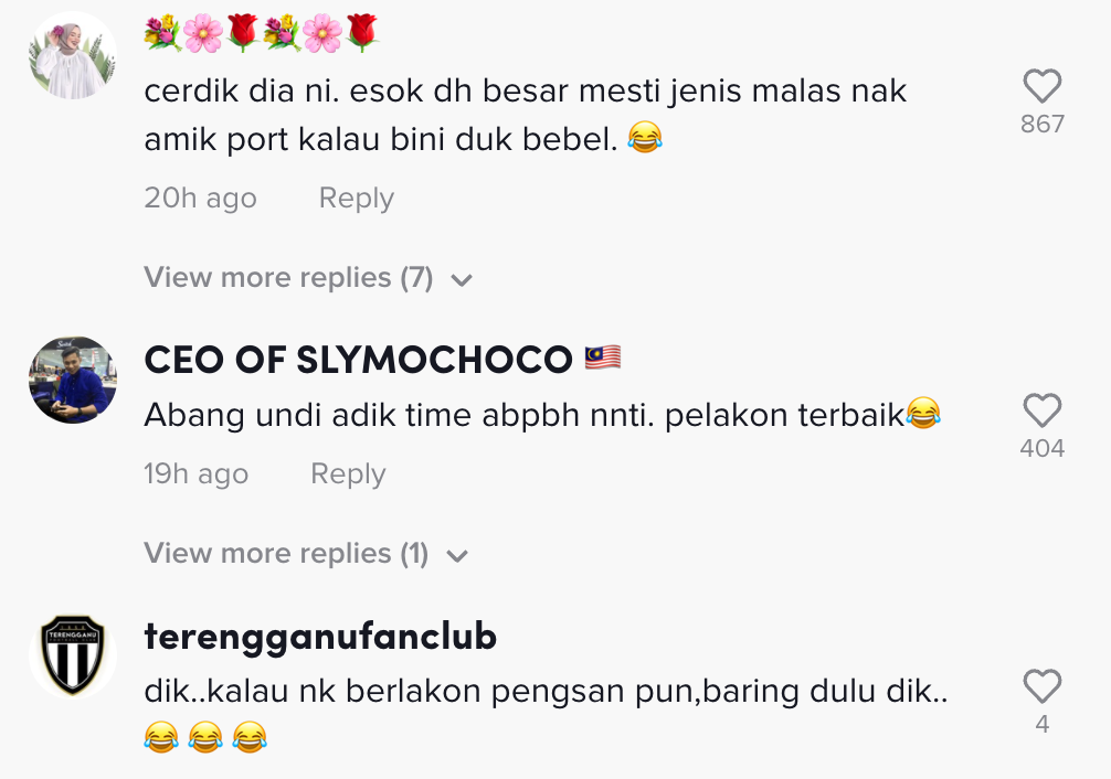 Berikut di bawah adalah antara komen daripada netizen di TikTok: