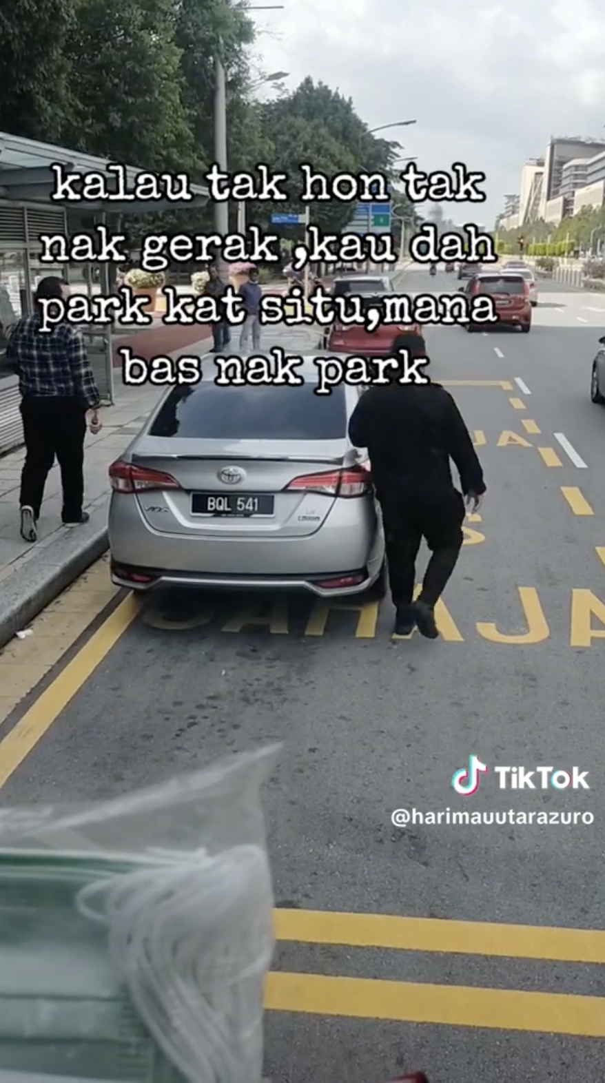 Sama seperti video yang tular di TikTok ini apabila pemilik kenderaan selamba memakir keretanya di kawasan perhentian bas telah mendapat perhatian ramai.