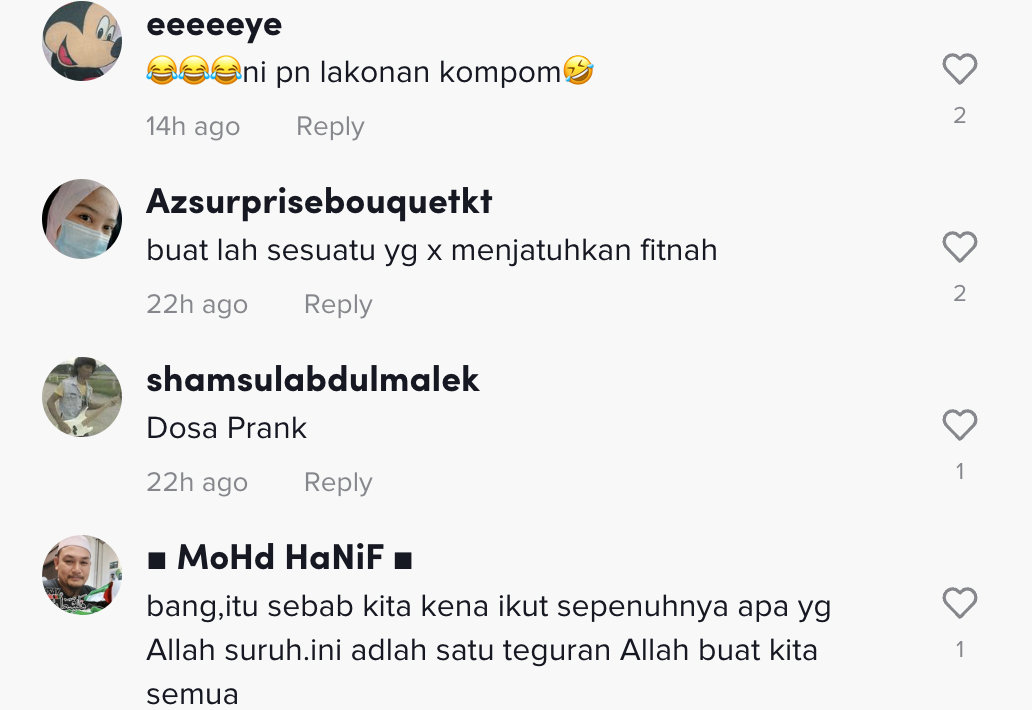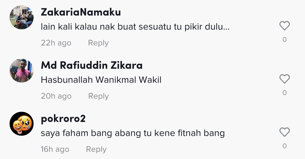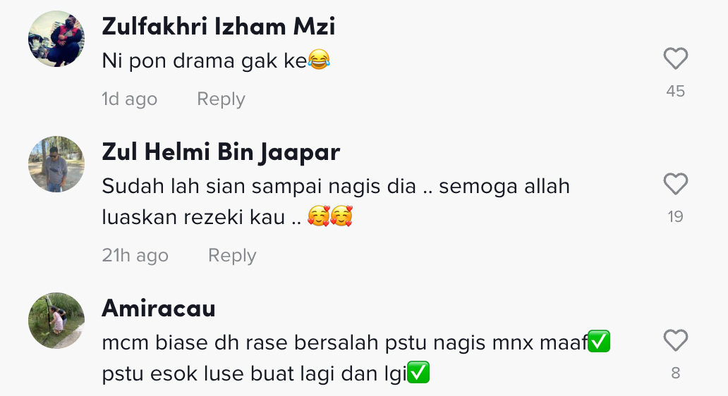 Berikut di bawah adalah antara komen daripada netizen di TikTok: