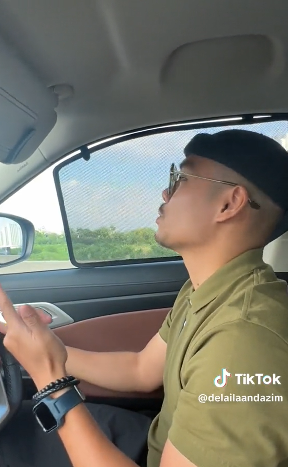 Menerusi video yang dimuat naik oleh @delailaandazim di TikTok, kelihatan seorang lelaki sedang rancak menyanyikan lagu Flowers dengan lagu kanak-kanak di dalam keretanya.